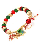 Christmas Bell Charm Bead Glass Stretch Bracelet