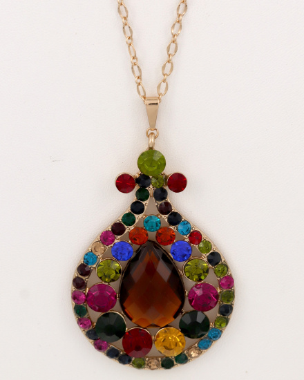 ![]() ![]() Tear Drop Glass Stone Pendant Long Necklace Length : 28" Pendant : 3/4" x 1 3/4" Material : Metal, Glass Stone ![]()