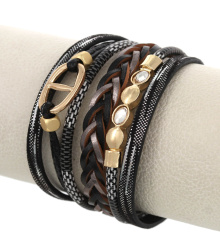 Multi Strand Metal Leather Band Bracelet