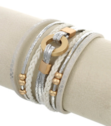 Metal Circle Multi Strand Leatherette Band Bracelet