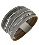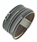 ![]() Multi Strand Leatherette Metal Band Bracelet Length : 7" Width : 1 1/8" Material : Leatherette, Metal