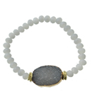 Earring Set Width x Length : 1" X 3" Material : Glass, Semi Precious Stone Metal Color : Burnished Gold