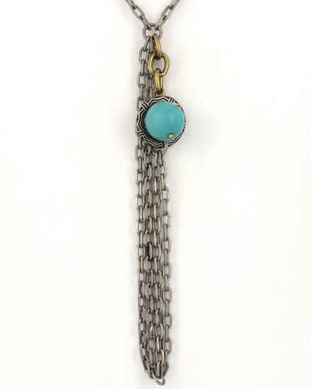 Metal Pendant Necklace Length : 23 1/4" + EXT Pendant : 7/8" X 2" Material : Metal, Semi Precious Stone, Turquoise