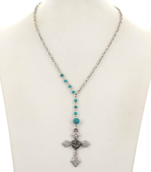 Cross Metal ID Holder Size : 32" + EXT, PA: 1 1/8" X 2 1/8" Material : Metal, Stone, Turquoise Metal Color : Antique Silver