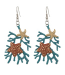 Starfish & Coral Dangle Earring Set Width x Length : 1" x 2 1/2" Material : Metal Metal Color : Worn Silver