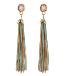 ![]() ![]() Chain Tassel Glass Dangle Earring Set Width x Length : 3/8" x 3" Material : Metal, Glass Metal Color : Matte Gold, Worn Gold