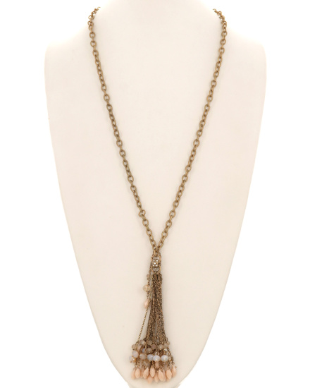 549618 - Glass Metal Tassel Long Necklace