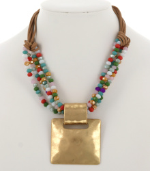 ![]() ![]() Beaded Glass Leatherette Multi Strand Necklace Length : 18 1/2" + EXT Drop : 1" Material : Glass, Leatherette ![]()