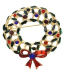 ![]() Christmas Wreath Rhinestone Enamel Brooch Size : 1 7/8" X 2" Material : Metal, Rhinestone, Enamel Metal Color : Gold ![]()