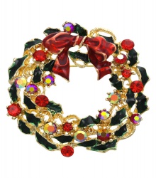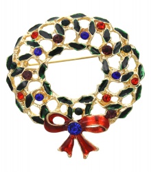 ![]() Christmas Wreath Rhinestone Enamel Brooch Size : 2" X 2" Material : Metal, Rhinestone, Enamel Metal Color : Gold ![]()