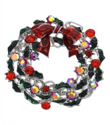 ![]() Christmas Wreath Rhinestone Enamel Brooch Size : 1 3/4" X 1 3/4" Material : Metal, Rhinestone, Enamel Metal Color : Silver ![]()