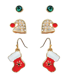 ![]() ![]() 2 Pair Christmas Earring Set Width x Length : 7/8" x 1" - 1/4" x 1/2" Material : Metal, Enamel, Glass Stone Metal Color : Gold ![]()