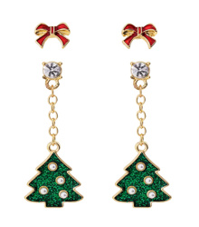 ![]() ![]() 2 Pair Christmas Tree Bow Earring Set Width x Length : 1/2" x 1 1/2" - 5/16" x 1/4" Material : Metal, Enamel, Glass Stone Metal Color : Gold ![]()
