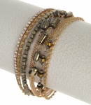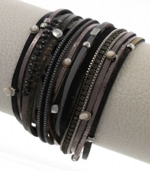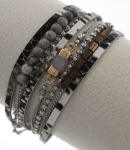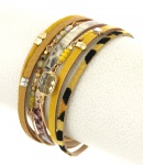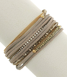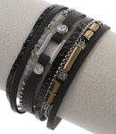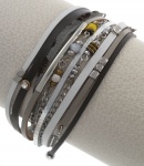 Multi Strand Metal Leather Rhinestone Band Bracelet