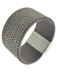 ![]() Multi Strand Leatherette Metal Band Bracelet Length : 7 1/8" Width : 1" Material : Acrylic, Leatherette, Metal ![]() |