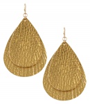 Leatherette Teardrop Dangle Earring Set Width x Length : 1 1/4" X 3" Material : Leatherette, Wood, Metal Metal Color : Gold
