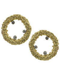 Cellulose Acetate Metal Thread Earring Set Width x Length : 2 1/4" X 3 1/2" Material : Cellulose Acetate, Metal, Thread Metal Color : Gold