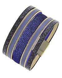 ![]() Multi Strand Leatherette Band Bracelet Length : 7" Width : 1" Material : Leatherette, Metal, Semi Precious Stone
