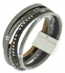 Multi Strand Rhinestone Leatherette Band Bracelet