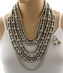 ![]() Statement Pearl Multi Strand Necklace & Earring Set Length : 16" + ext. 2" Earring : 1/2" x 1 1/2" Drop : 1" ![]()