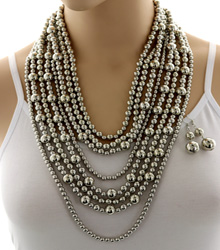 ![]() ![]() Statement Pearl Multi Strand Necklace & Earring Set Length : 16" + ext. 2" Earring : 1/2" x 1 1/2" Drop : 1" ![]()