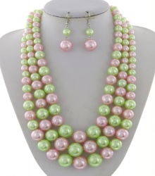 ![]() ![]() 3 Strands Pearl - Synthetic Graduating Necklace & Earring Set Length : 18" + EXT 3" Earring : 1/2" X 2" Drop : 2 1/4" ![]()