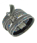 Glass Leatherette Stone Cuff Bracelet