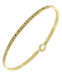 3mm Message Brass Bangle - LIFE + LAUGHTER x LOVE - HATE = HAPPINESS