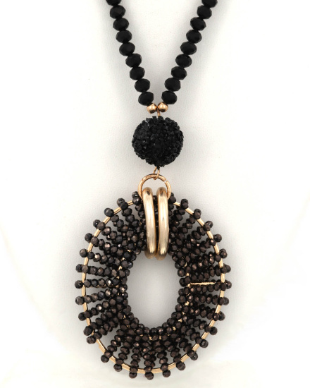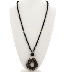 ![]() Round Semi Precious Stone Pendant Multi Strand Necklace Length : 15" + ext 3" Pendant : 1 1/8" X 1 1/2" Drop : 4 1/4"