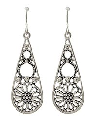 ![]() ![]() Flower Metal Teardrop Dangle Earring Set Width x Length : 5/8" X 2" Material : Metal Metal Color : Antique Silver