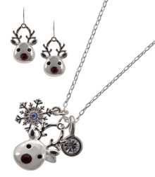 Christmas Reindeer Metal Rhinestone Dangle Earring Set Width x Length : 5/8" X 1 3/8" Material : Metal, Rhinestone Metal Color : Silver