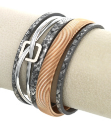 ![]() ![]() Multi Strand Metal Leatherette Bracelet Length : 7" Width : 1 1/4" Material : Metal, Leatherette, Plastic