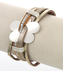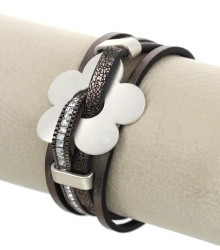 ![]() ![]() Multi Strand Flower Metal Leatherette Bracelet Length : 7 1/8" Width : 1 1/4" Material : Metal, Leatherette