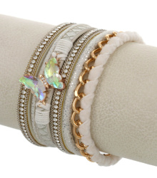 ![]() ![]() Multi Strand Glass Butterfly Leatherette Bracelet Length : 7" Width : 1 3/8" Material : Metal, Leatherette, Glass