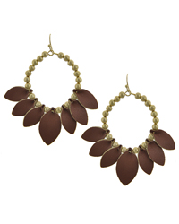 Metal Wood Diamond Dangle Earring Set