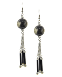 Wing / Feather Acrylic Metal Thread Dangle Tassel Earring Set