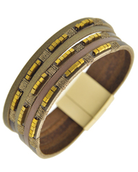 Leaf Leatherette Metal Rhinestone Wrap Bracelet
