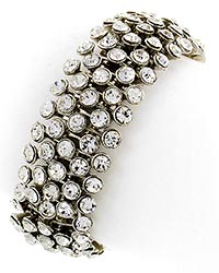 Cross Fabric Metal Stretch Bracelet Size Free : STRETCH Width : 5/8" Top Face : 1 1/4" W X 1 3/4" L