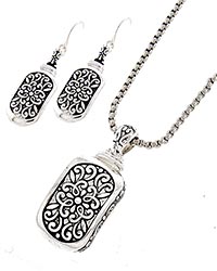 Filigree Metal Pendant Necklace & Earring Set Length : 17" + EXT Pendant : 1 3/4" L Earring : 1 5/8" L