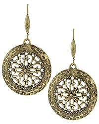 ![]() Hammered Metal Round Dangle Earring Set Width x Length : 1 1/8" X 1 1/2" Material : Metal Metal Color : Burnished Gold