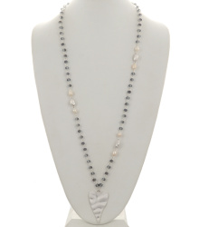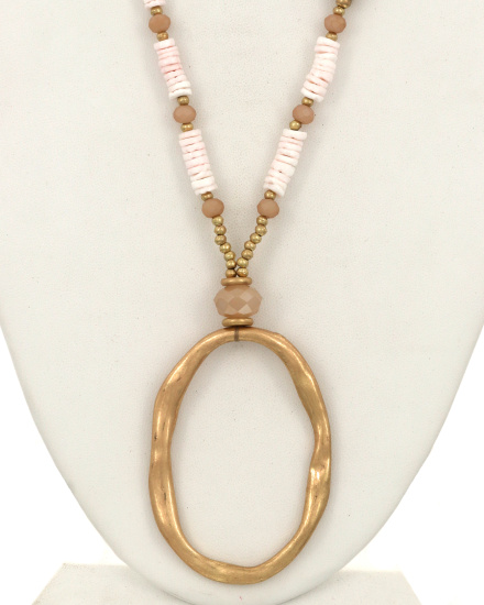 Abalone Metal Pendant Necklace & Earring Set Length : 16 3/8" + EXT Pendant : 7/8" X 2 1/4" Earring : 5/8" X 1 7/8"