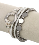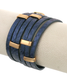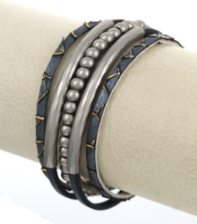 Multi Strand Metal Leather Band Bracelet Length : 7" Width : 1 3/8" Material : Metal, Leatherette