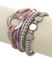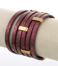 Multi Strand Leatherette Band Bracelet Length : 7 1/8" Width : 1 3/8" Material : Metal, Leatherette, Acrylic, Rhinestone   |