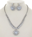 Heart Pendant Necklace & Earring Set Length : 15 1/2" + ext Pendant : 1 1/8" x 2 1/4" Earring : 9/18" x 1 3/8"