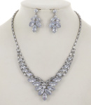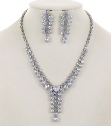 Cubic Zirconia Brass Necklace & Earring Set Length : 16" + ext 5" Earring : 3/4" X 1 5/8" Drop : 1 1/4"