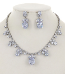 Cubic Zirconia Teardrop Brass Necklace & Earring Set Length : 15" + ext 5" Earring : 1/2" X 1 5/8" Drop : 1"