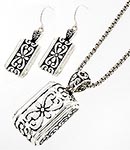 All Silver Metal Pendant Necklace & Earring Set Length : 16" + ext Pendant : 1 1/2" x 1 1/2" Earring : 7/8" x 1 3/8"