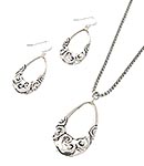 ![]() ![]() Filigree Metal Pendant Necklace & Earring Set Length : 15 1/4" + EXT Pendant : 7/16" X 5/8" Earring : 7/16" X 1"