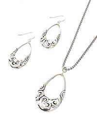 Filigree Metal Pendant Necklace & Earring Set Length : 16" + ext Pendant : 1" x 2" Earring : 3/4" x 1 5/8"