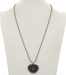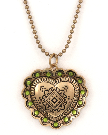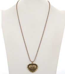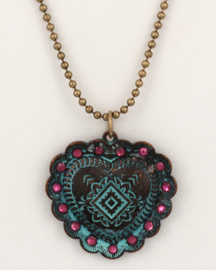 Bohemia Heart Patina Filigree Pendant Necklace Length : 2mm 24" + Ext 2 1/2" Pendant : 1 3/8" x 1 1/2" Material : Metal, Rhinestone